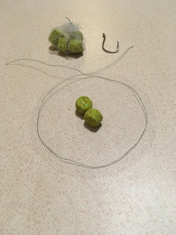 Add a whole worm, cut bait or carp bait to bag, pull draw string ends, cinch closed, tie, trim and cover your hook. Never loose your bait again.